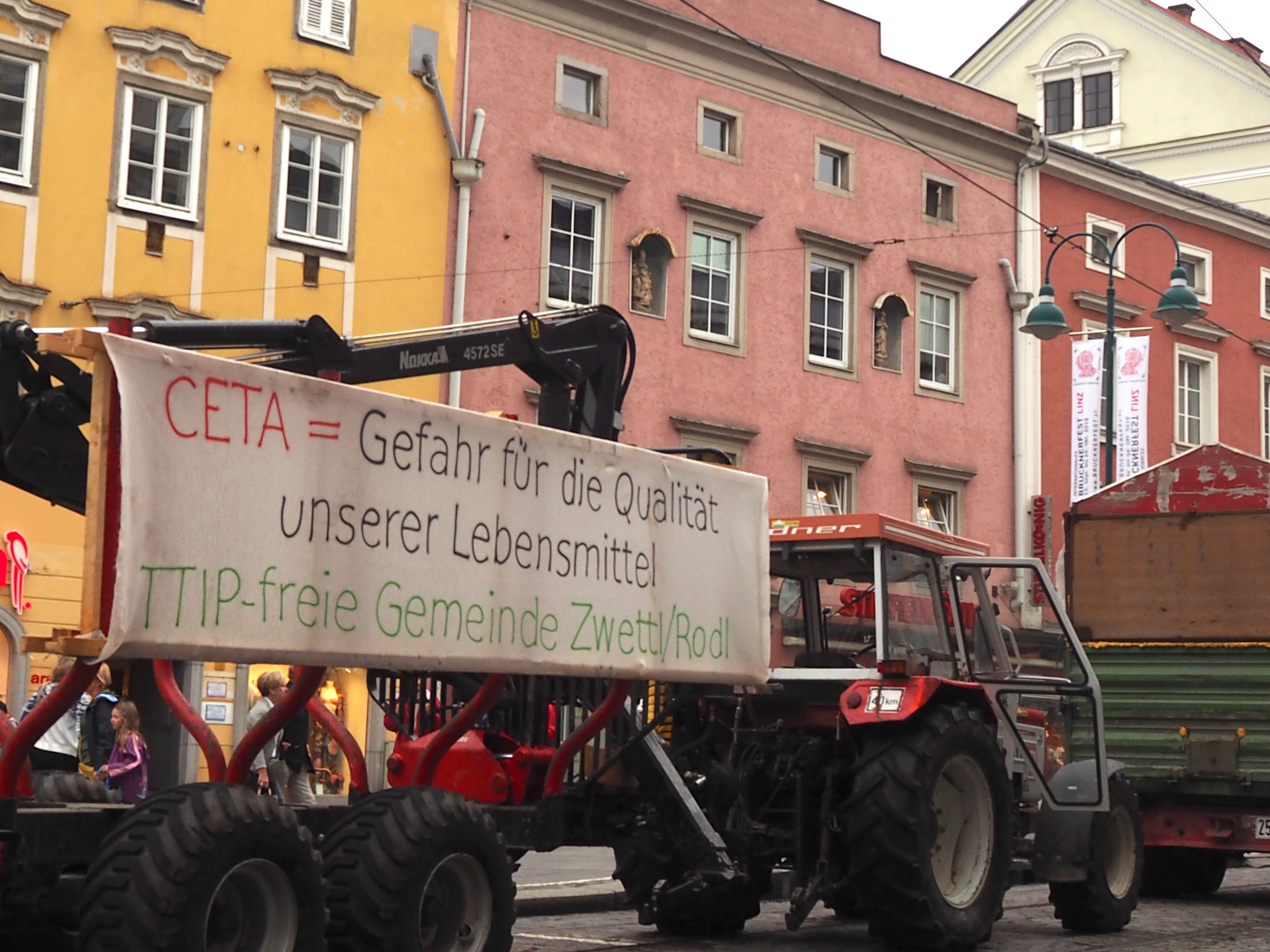 Mehr denn je brauchen wir eine Handels-und Agrarpolitik, die das Wohl aller Menschen auf unserem Planeten, den Erhalt möglichst vieler Höfe weltweit und einen sorgsamen Umgang mit unserer Umwelt in den Mittelpunkt stellt. Deshalb ist es uns ein Anliegen möglichst viele ZwettlerInnen darüber zu informieren mittels Vorträge, persönliche Gespräche, Beteiligung bei Demos und Diskussionsrunden. Gemeinsam mit einigen von der Zwettler Musik, Bäuerinnen und Bauern, sowie einigen anderen engagierten ZwettlerInnen waren wir aktiv bei der Demo vom vergangen Samstag vertreten.